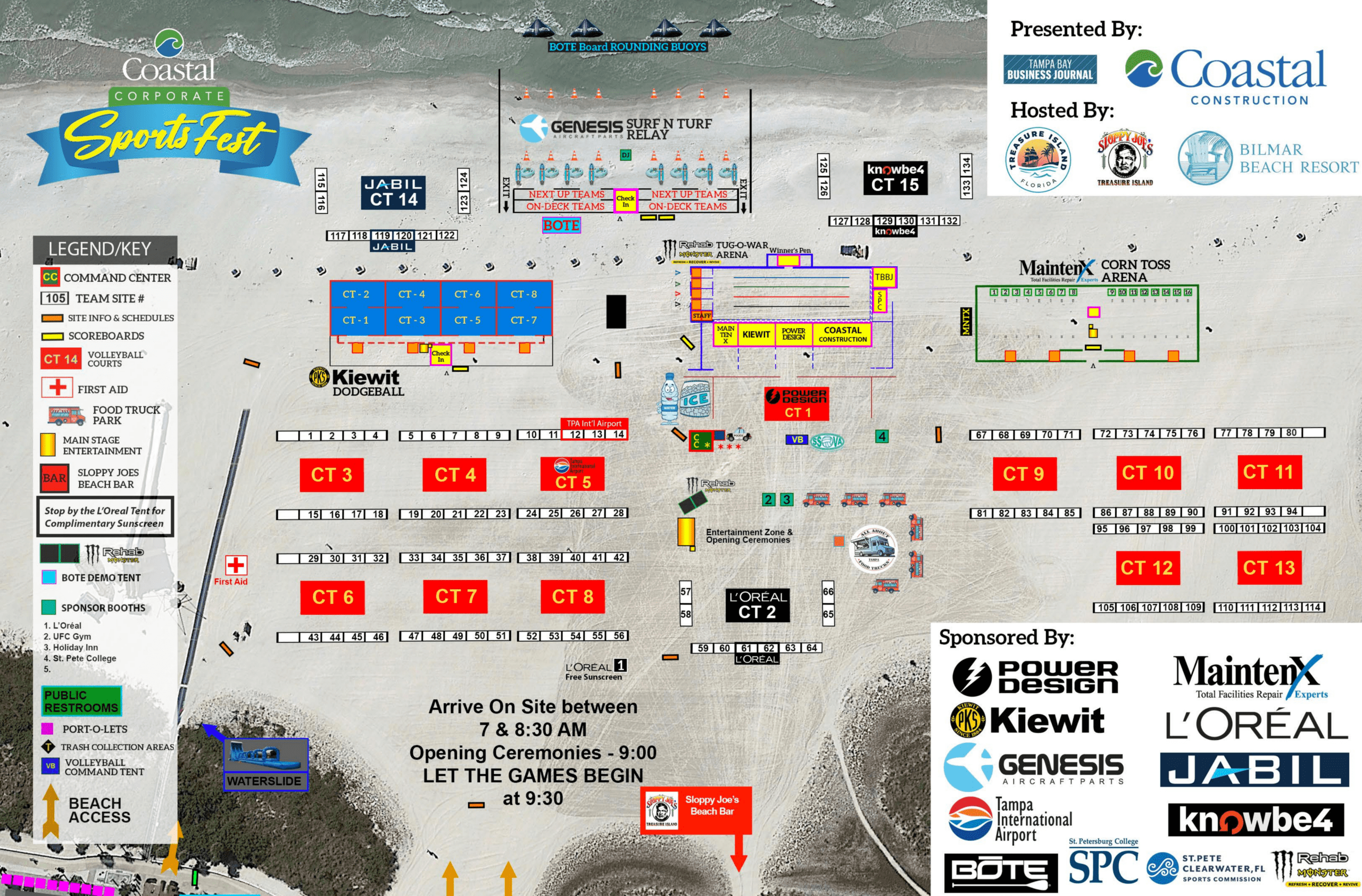OR drop off your team supplies on site at the Gulf Front Parking Lot (see site map) and proceed to park at St. Petersburg College – Gibbs Campus and shuttle back. (Please have someone available to take everything to your team spot and please do not block traffic in this parking lot).